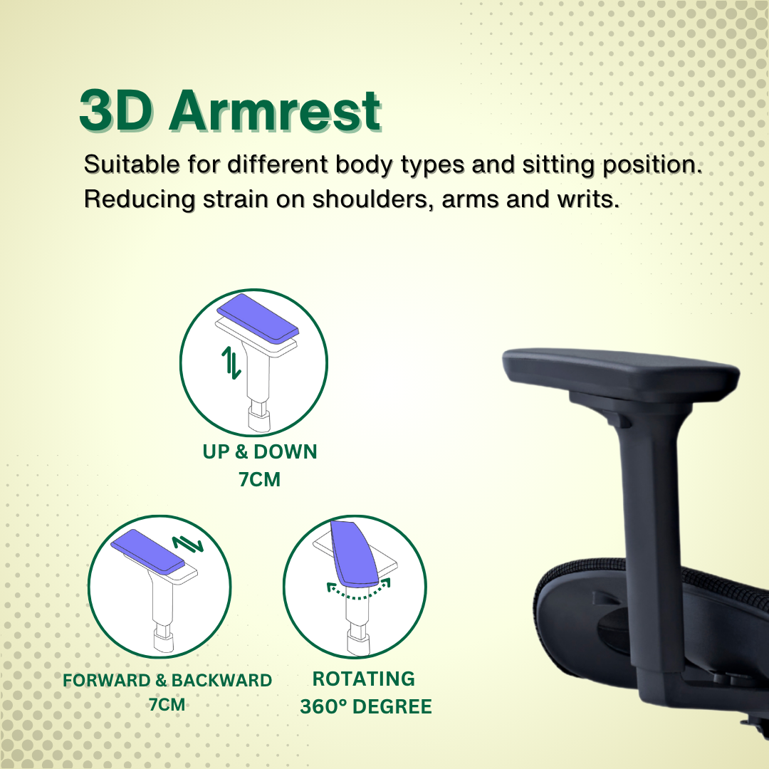 - šš«š¦š«šš¬š: 3D Armrest (Move Forward & Backward / Height Adjustable / Inward & Backward)